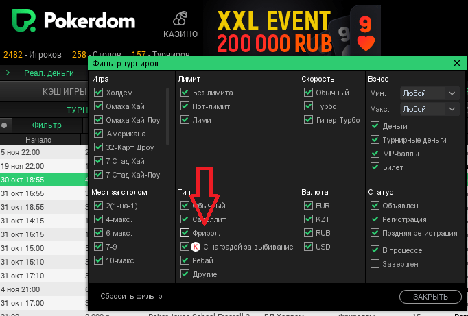 Найти бесплатные соревнования очень просто: достаточно в фильтре указать именно этот формат, либо отсортировать состязания по величине бай-ина, тогда фрироллы будут отображаться первыми.