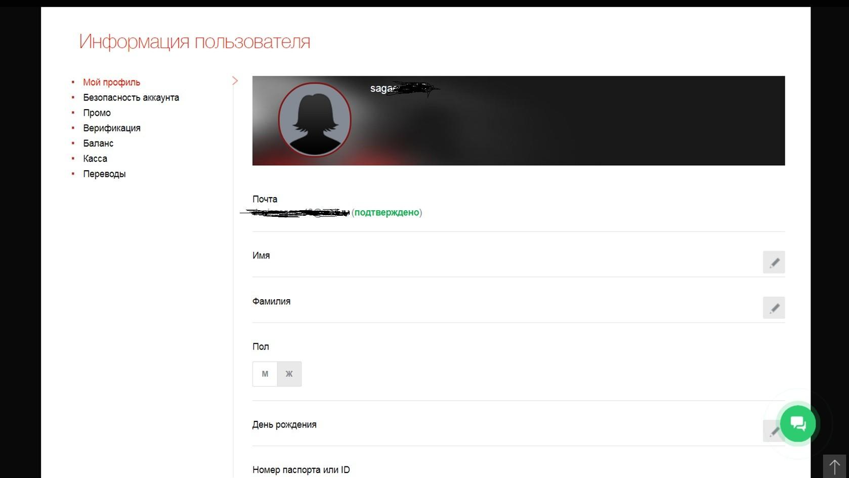 - Мой профиль. Тут находится вся персональная информация аккаунта. Здесь игрок может указать фамилию, имя, пол, день рождения, номер паспорта, адрес, часовой пояс, телефон. Можно запретить отображаться разделу казино и спортивных ставок, чтобы не было соблазна тратить там деньги. Также разрешено загрузить аватарку на профиль, весом не более 1 мегабайт и не содержащую запрещенных надписей и изображений.